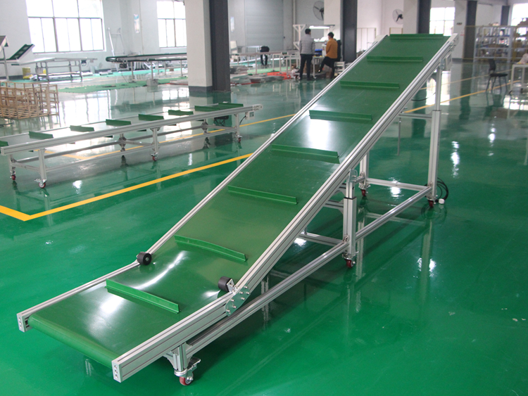 爬坡輸送機(jī)的輸送傾角大,最大可達(dá)90°,是大傾角輸送和垂直提升的理想設(shè)備。因此可以節(jié)約占地面積,節(jié)省設(shè)備投資和土建費(fèi)用,取得良好的綜合經(jīng)濟(jì)效益。